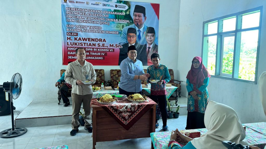 Jember – Anggota DPR RI F-Gerindra, Kawendra Lukistian meresmikan dua ruang kelas baru di Kabupaten Jember, Kamis (9/10/25). Peresmian dilakukan di dua lokasi sekolah berbeda, yakni SMP Darut Tauhid, Balung Lor dan MI Nurul Hidayah, Sumber Kejayan, Mayang. Dalam sambutannya, Kawendra menyampaikan bahwa pembangunan ruang kelas baru merupakan wujud nyata meningkatkan kualitas sarana belajar bagi generasi muda.