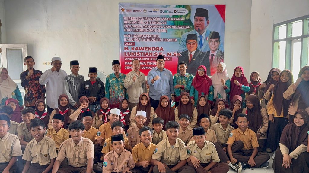 “Kita ingin memastikan anak-anak di seluruh Indonesia, termasuk di Jember, mendapatkan akses pendidikan yang layak dan lingkungan belajar yang nyaman. Inilah bentuk nyata sinergi antara lembaga legislatif, dunia usaha, dan masyarakat,” ujar Kawendra, Kamis (9/10/25).