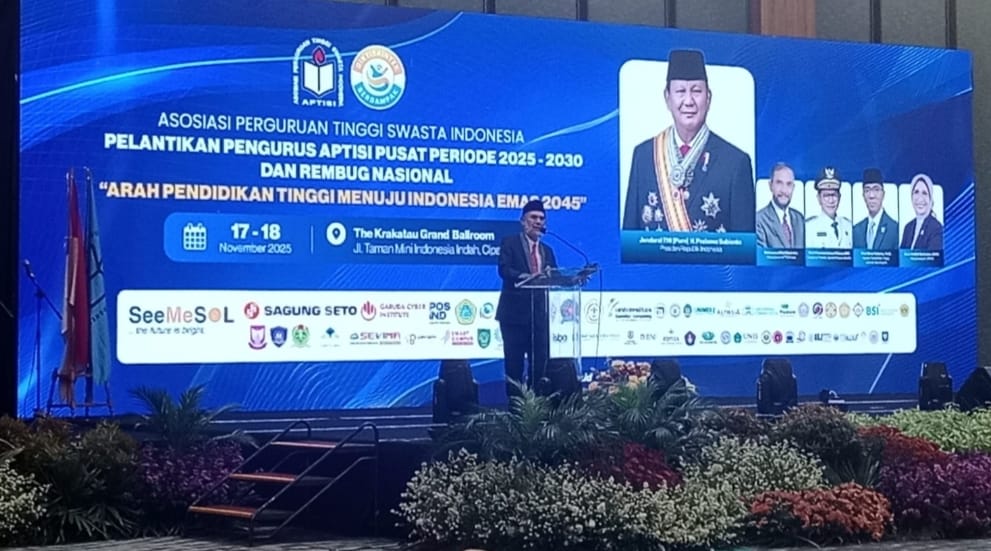JAKARTA – Pelaksanaan Rembug Nasional APTISI (Asosiasi Perguruan Tinggi Swasta Indonesia) Pusat dengan Tema “Arah Pendidikan Tinggi Menuju Indonesia Emas 2045”, yang diadakan pada Senin sampai dengan Selasa (17-18/Nov-2025) di The Krakatau Grand Ballroom, TMII, Cipayung, Jakarta Timur