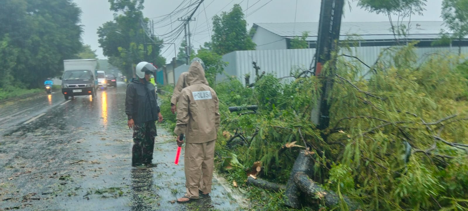 Babinsa, Bhabinkamtibmas dan BPBD Sigap Evakuasi Pohon Tumbang di Jalan Boyolali–Jatinom