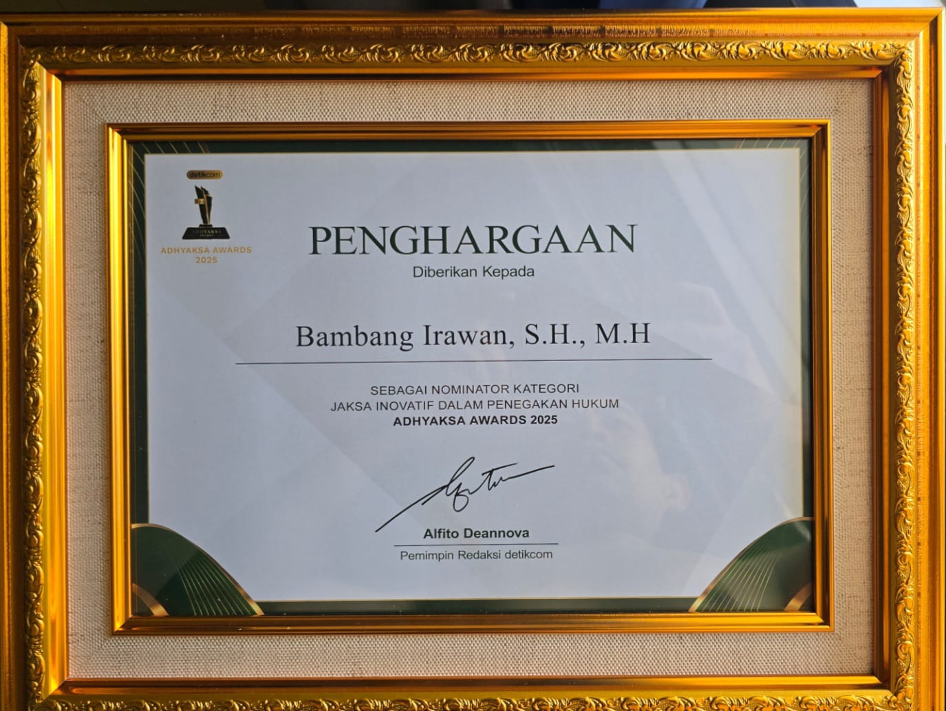 Jaksa Bambang Irawan, S.H, M.H yang menjabat sebagai Kepala Seksi (Kasi) Bidang Perdata dan Tata Usaha Negara (Datun) Kejari Bandar Lampung, sebelumnya terpilih sebagai nominator 3 (tiga) besar finalis adhyaksa awards 2025 dalam kategori, “jaksa inovatif dalam penegakan hukum”.