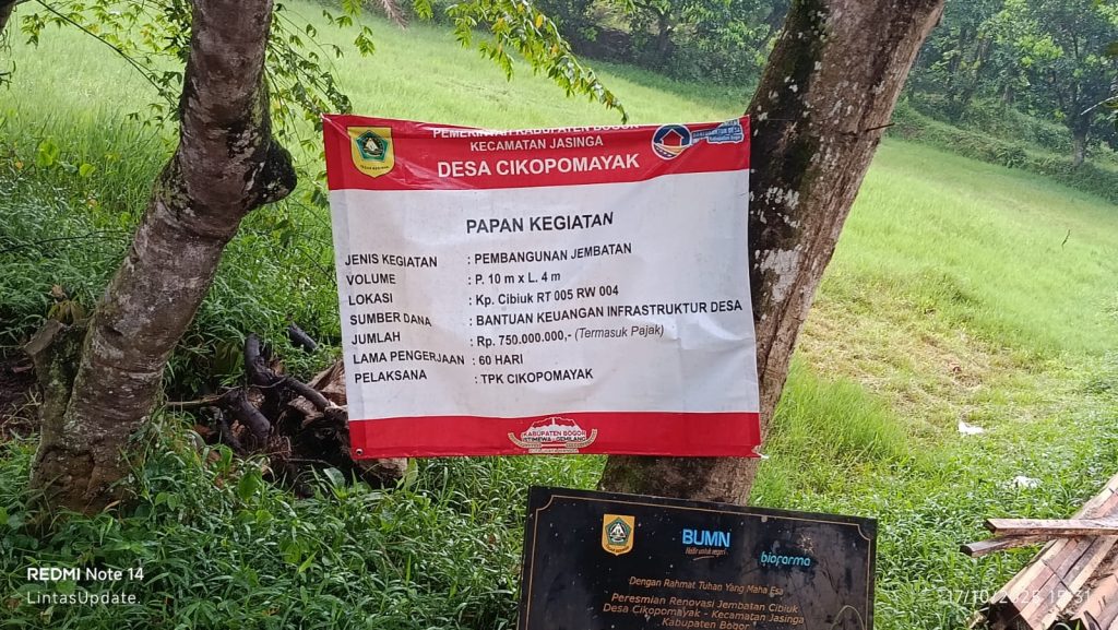 Bogor”Sabtu 18 Oktober 2025,demi kemajuan desa,perbaikan jembatan yang di anggarakn melalui program unggulan kbupten Bogor,iya itu anggaran sami Sade satu desa satu miliar,tahun 2025.telah dilaksakan dengan baik,oleh pemerintah desa cikopomayak,kec Jasinga,kabpten Bogor.terus mempokuskan pembanguan demi kemajuan dan kesejatraan masarakt di desanya.
