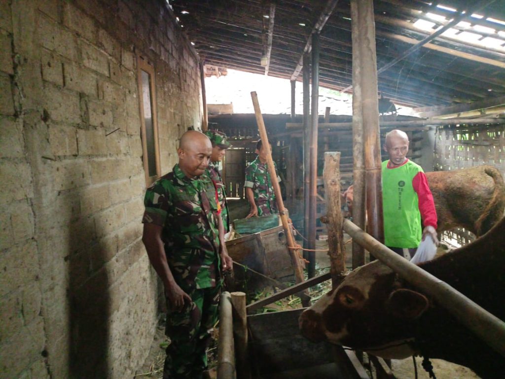 Sragen, Selasa (14/10/2025) Sebagai wujud kepedulian terhadap kesejahteraan masyarakat di bidang peternakan, Serka Burhan Babinsa Desa Gemantar dan 2 orang anggota Koramil 14/Mondokan Kodim 0725/Sragen melaksanakan kegiatan pemeriksaan kebersihan kandang sapi di wilayah binaannya, tepatnya di Dukuh Sambi Rembyung Desa Gemantar. Kegiatan ini dilakukan untuk memastikan hewan ternak warga dalam keadaan sehat serta kandang terjaga kebersihannya.