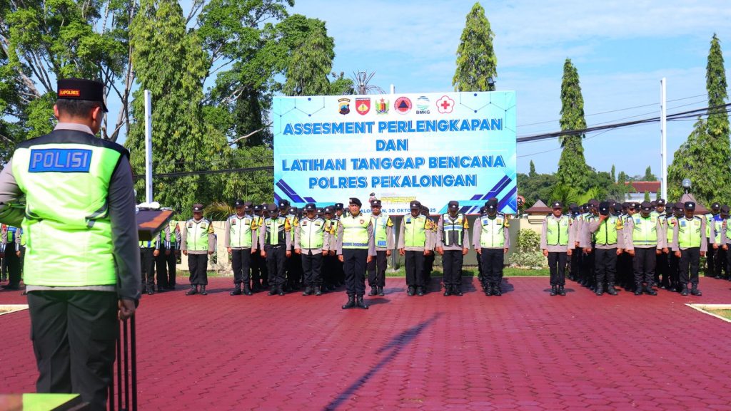 PEKALONGAN – Kabarbahri. co. id – Polres Pekalongan – Polda Jateng – Polres Pekalongan bergerak cepat merespons potensi cuaca ekstrem di Jawa Tengah. Hari ini, Kamis (30/10/2025), digelar apel asesmen perlengkapan dan Latihan tanggap bencana di halaman Mapolres Pekalongan. Kegiatan ini merupakan tindak lanjut dari rapat koordinasi kesiapsiagaan bencana yang digelar sehari sebelumnya.