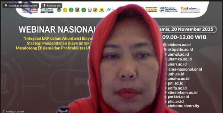 Hal ini ditunjukkan melalui partisipasi Dr. Meiliyah Ariani, S.E., M.Ak., sebagai narasumber dalam Webinar Nasional bertema “Optimalisasi Operasional UMKM Melalui Implementasi Enterprise Resource Planning (ERP)” yang berlangsung pada Rabu, 20 November 2025.