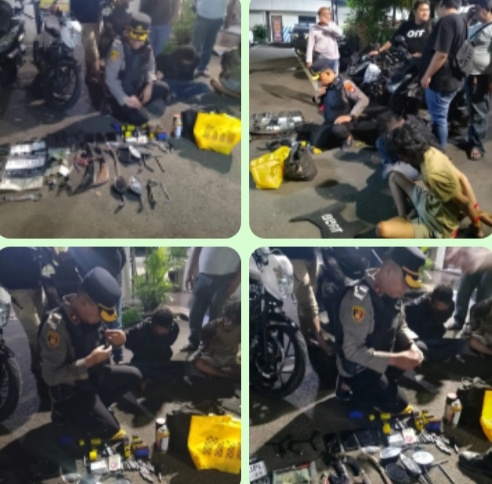 Penangkapan kedua terduga pelaku Curanmor oleh Polsek Jatiuwung, berkat adanya laporan informasi warga yang melihat gerak gerik mencurigakan 2 (dua) orang Pria, dimana (satu) orang laki-laki berada diatas kendaraan motor warga dan 1 (satu) orang lagi standbuy di motor Honda PCX yang dikendarainya, kemudian 1 (satu) orang pelaku sedang mengotak ngatik lubang kunci motor dan berhasil membawa kendaraan milik warga 1 unit Honda Beat Street warna Hitam