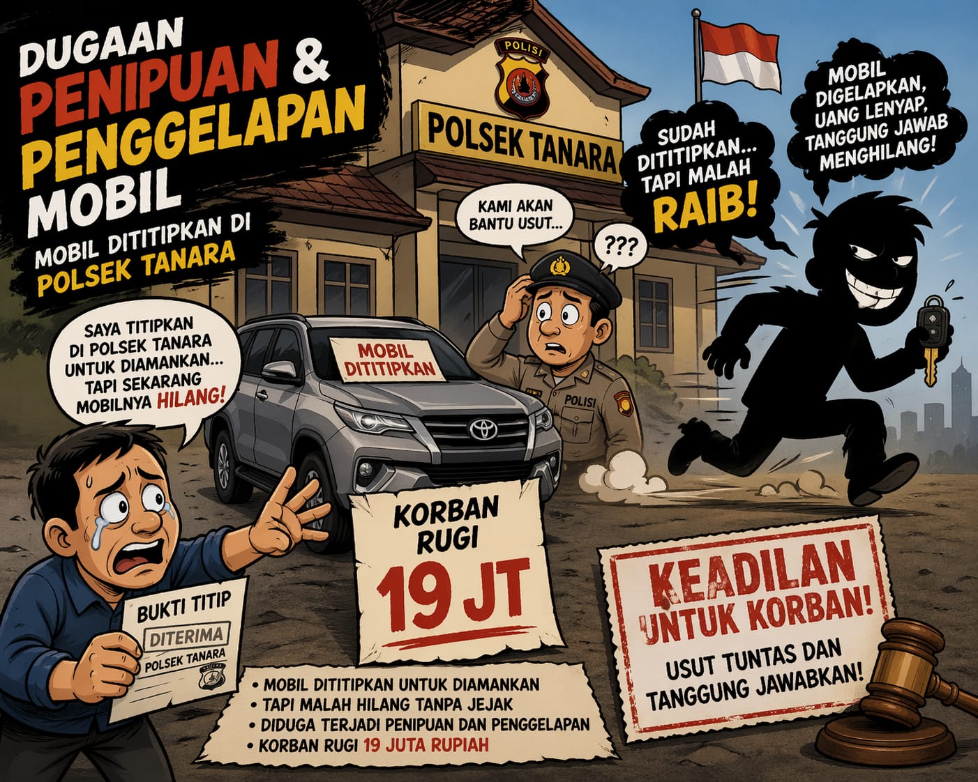 Mobil tersebut kemudian diamankan ke Mapolsek Tanara, dan korban diberikan waktu selama tiga hari untuk menghadirkan pelaku guna dimintai keterangan. Namun demikian, menurut pengakuan korban, kendaraan tersebut justru telah diambil kembali oleh pihak rental setelah diduga memberikan sejumlah uang kepada oknum aparat.