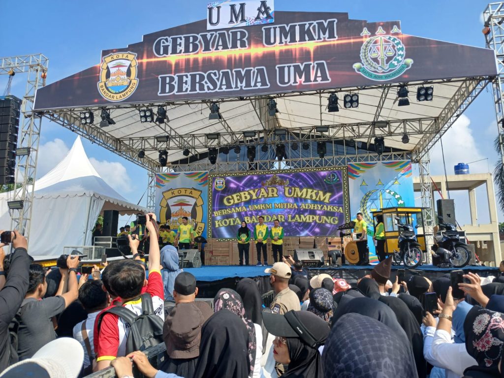 Kota Bandar Lampung, Rangkaian acara Gebyar UMKM dilaksanakan oleh Kejaksaan Negeri (Kejari) Bandar Lampung bersama Kejaksaan Tinggi Lampung berkolaborasi dengan Pemerintah Kota Bandar Lampung yang bertajuk, “Bersama UMKM Mitra Adhyaksa”, yang dipusatkan di gedung Graha Mandala Alam, Kota Bandar Lampung, pada Jumat (17/10/2025).