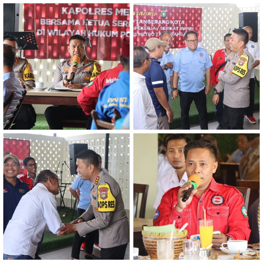Dalam rangka mempererat sinergi antara aparat kepolisian dengan elemen masyarakat, Kapolres Metro Tangerang Kota Kombes Pol Dr. Raden Muhammad Jauhari, S.H., S.I.K., M.Si. menggelar kegiatan silaturahmi dengan elemen serikat buruh se-Kota Tangerang, Selasa (11/11/2025) siang, di Rumah Makan Telaga Seafood Modernland, Kota Tangerang.