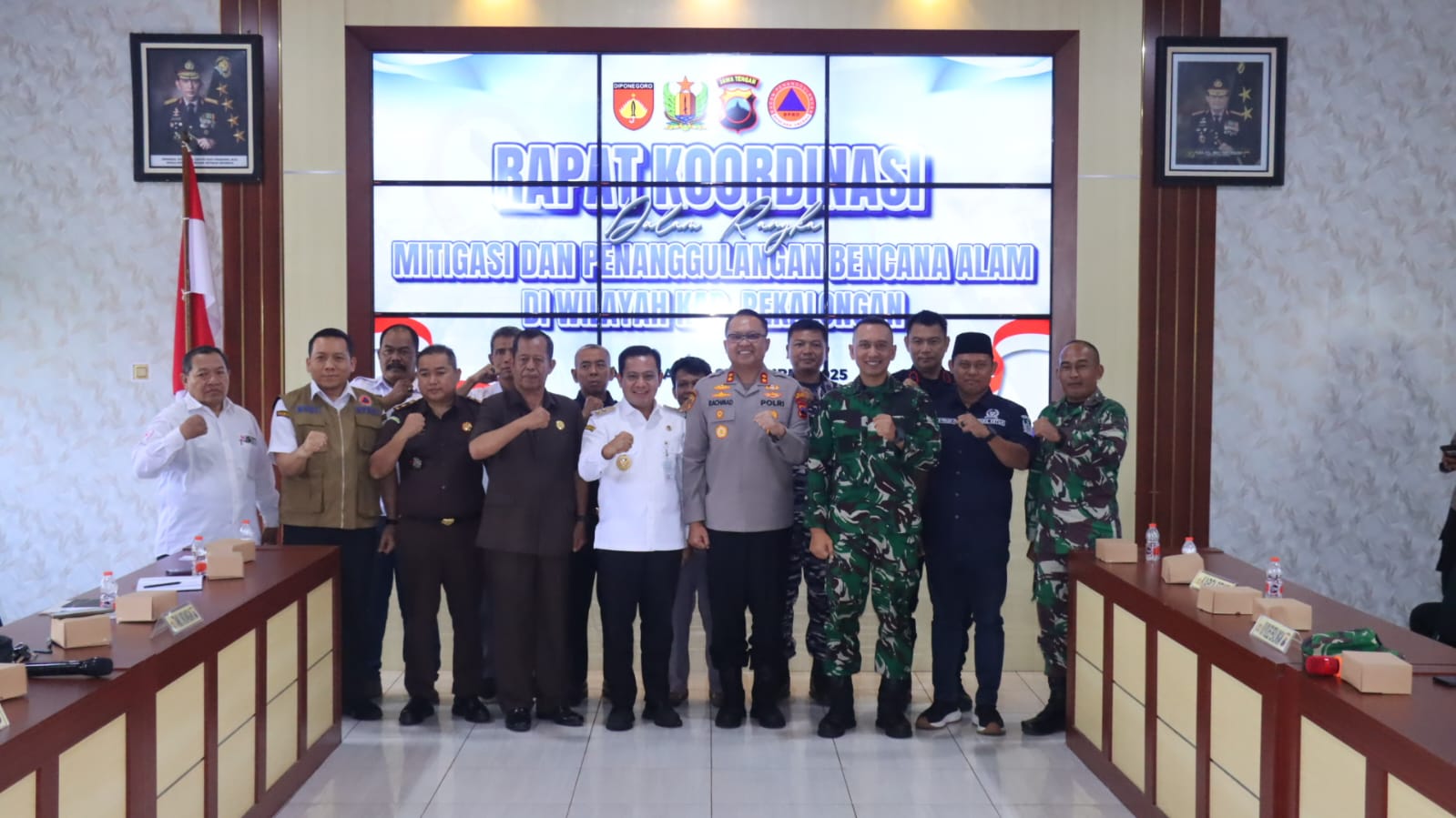 Rapat dipimpin oleh Kapolres Pekalongan AKBP Rachmad C. Yusuf, S.I.K., M.Si., dan turut dihadiri oleh Wakil Bupati Pekalongan H. Sukirman, S.S., Dandim 0710 Pekalongan Letkol Arm I. Garry Herlambang, S.Sos, serta Ketua dan Wakil Ketua DPRD Kabupaten Pekalongan. Hadir pula perwakilan dari BPBD, Dinas Kesehatan, Satpol PP dan Damkar, Perhutani, PMI, RAPI, hingga jajaran Kapolsek.