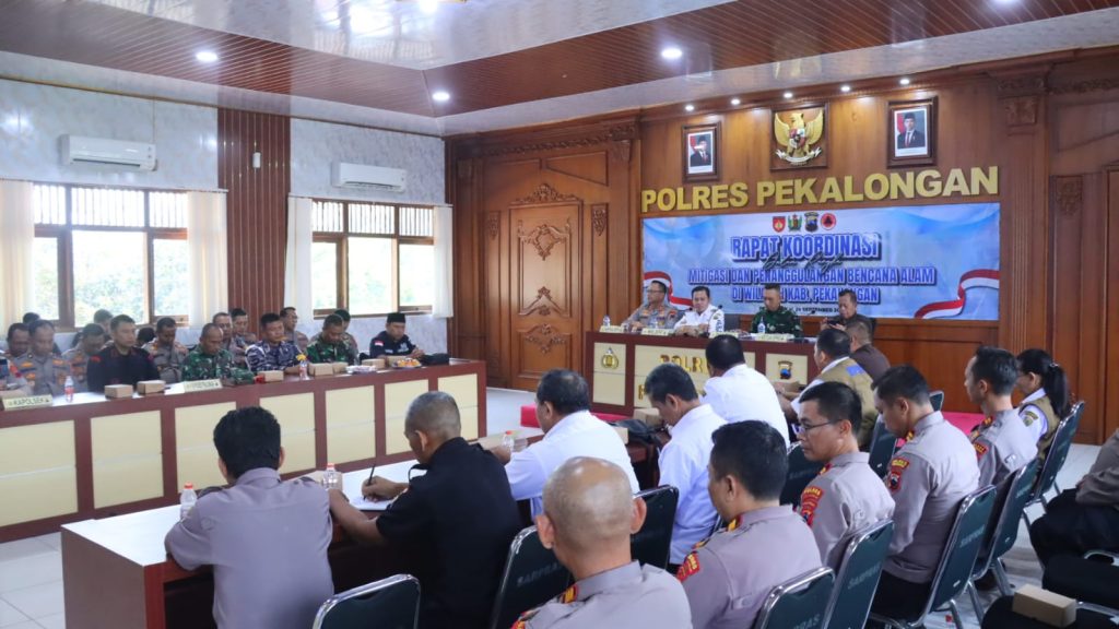 Pekalongan- Kabarbahri. co. id – Polres Pekalongan – Polda Jateng – Kepolisian Resor Pekalongan bersama unsur Forkopimda menggelar rapat koordinasi dalam rangka mitigasi dan penanggulangan bencana alam, Rabu (24/09/2025). Kegiatan ini berlangsung di aula Mapolres Pekalongan.