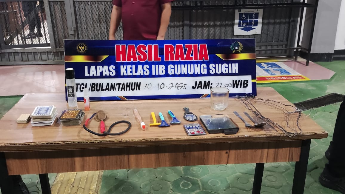 Dalam memperkuat sinergi antar aparat penegak hukum serta menciptakan lingkungan pemasyarakatan yang bersih dari penyalahgunaan narkotika, Lapas Kelas IIB Gunung Sugih melaksanakan razia gabungan bersama Kepolisian Sektor (Polsek) Gunung Sugih dan TNI dari Koramil Gunung Sugih pada, Jumat (10/10) malam.