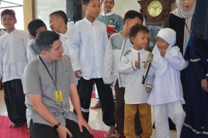 Kemudian acara ditutup dengan penyerahan santunan kepada anak Yayasan Yatim Piatu Tebet sebagai wujud kepedulian dan teladan akhlak Rasulullah SAW.