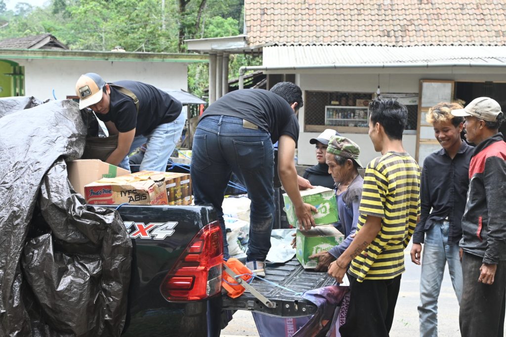 Bantuan tersebut langsung diterima oleh masyarakat melalui tim yang berkoordinasi dengan aparat setempat, termasuk perwakilan pemerintah desa dan pengelola posko pengungsian.