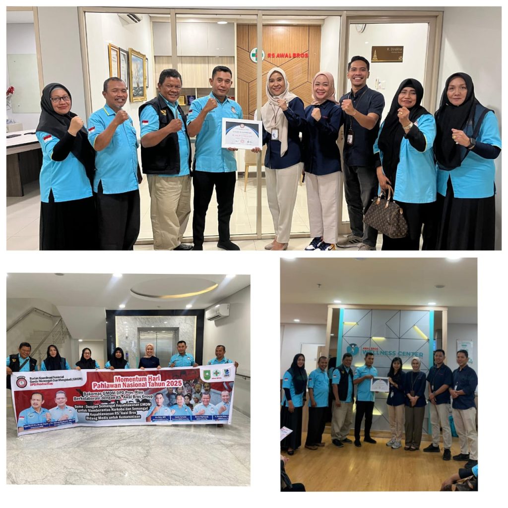 Mengusung semangat Hari Pahlawan 2025, Garda Mencegah dan Mengobati (GMDM) Riau bersama RS Awal Bros Group menggelar kegiatan sosialisasi bahaya narkoba dan HIV/AIDS di Pekanbaru, Senin (10/11/2025).
