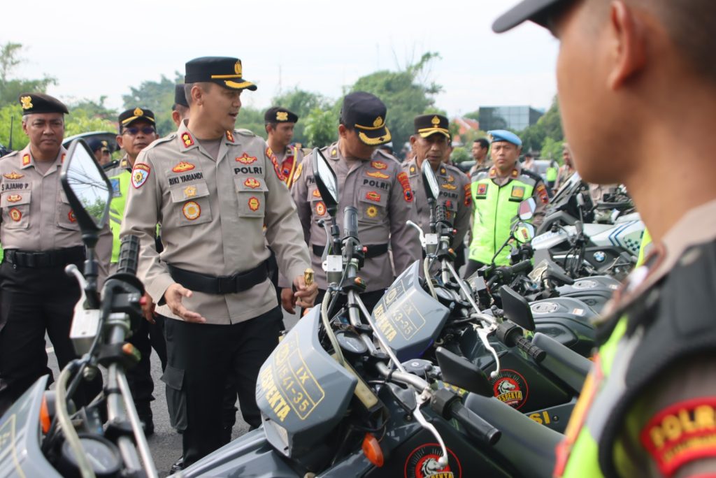 Usai pelaksanaan Apel gelar pasukan, Kapolres bersama jajaran melakukan pengecekan kesiapan sarana dan prasarana kendaraan bermotor yang digunakan selama operasi.