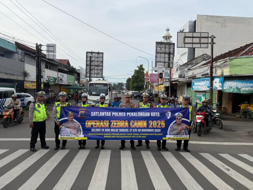 Pekalongan – Kabarbahri. co. id – Polres Pekalongan Kota – Polda Jateng – Satgas Kamseltibcarlantas Operasi Zebra Candi 2025 kembali melakukan kampanye keselamatan berlalu lintas dengan membagikan brosur dan stiker kepada para pengguna jalan di Simpang 4 Alun-Alun Kota Pekalongan, Rabu (19/11/2025).