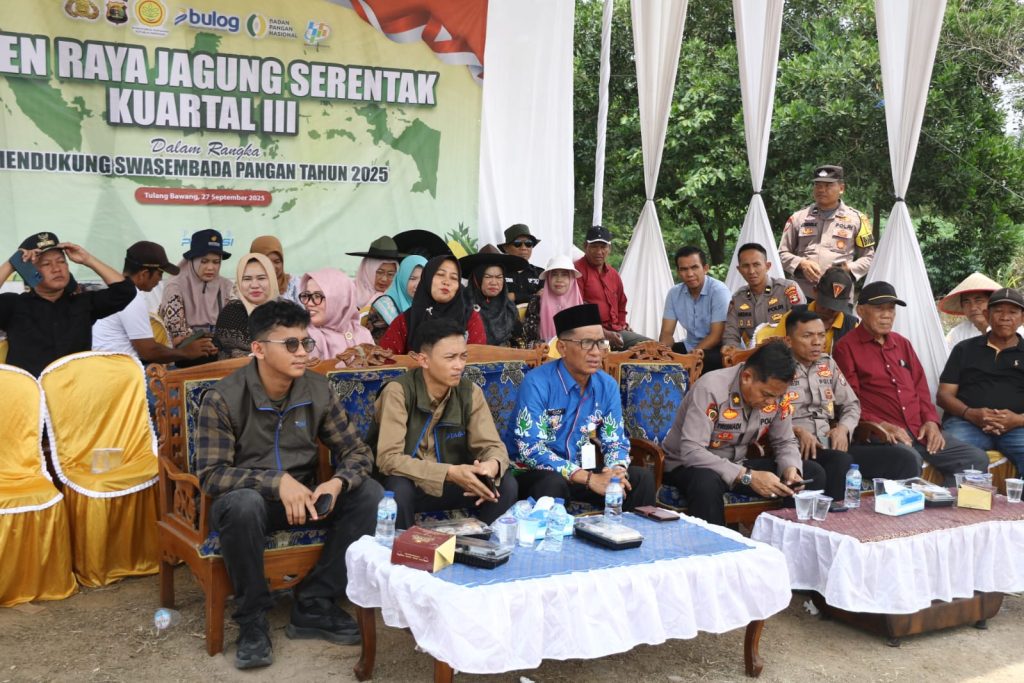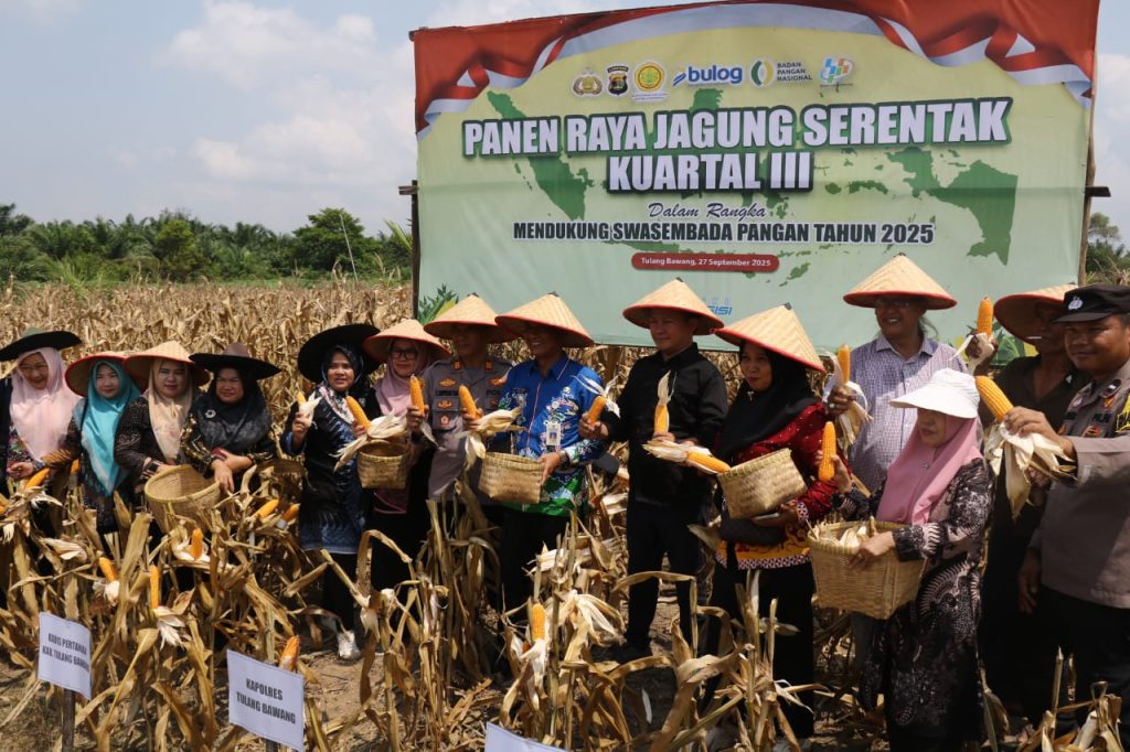 Tulang Bawang – Polres Tulang Bawang bersama unsur Forkopimda melaksanakan kegiatan Panen Raya Serentak Jagung Kuartal III yang digelar pada Sabtu, (27/09/2025), di lahan ketahanan pangan Kelurahan Menggala Kota, Kecamatan Menggala, Kabupaten Tulang Bawang.