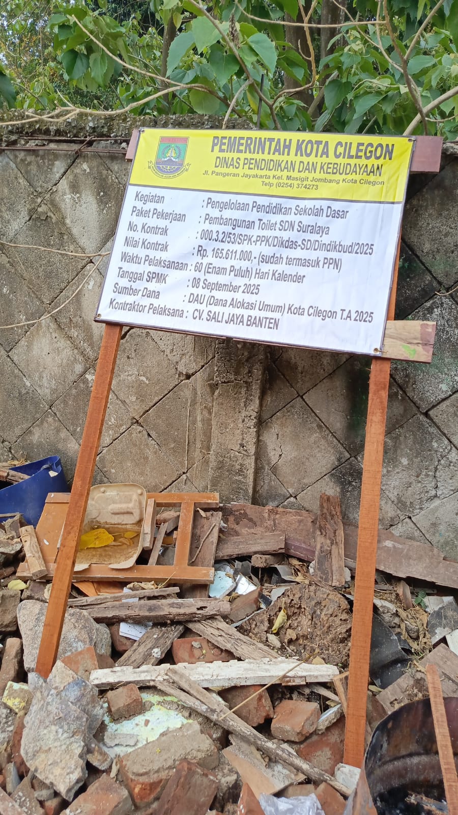 CILEGON – Proyek pembangunan toilet di SDN Suralaya senilai Rp165,6 juta yang dikerjakan CV. Sali Jaya Banten menuai protes dari BP2 Tipikor Aliansi Indonesia serta sejumlah aktivis. Proyek yang bersumber dari Dana Alokasi Umum (DAU) Kota Cilegon Tahun Anggaran 2025 itu resmi berjalan setelah terbitnya Surat Perintah Mulai Kerja (SPMK), dengan jangka waktu pelaksanaan 60 hari kalender.