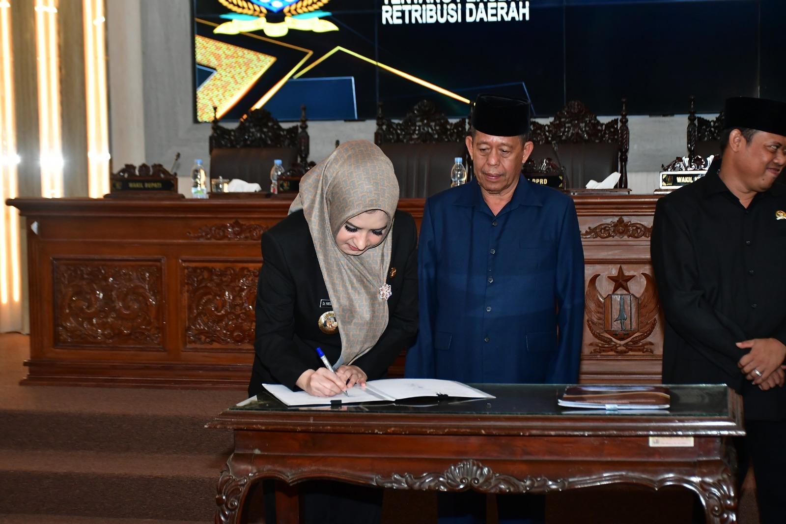 Tiga Raperda yang disetujui meliputi Raperda tentang Pengarusutamaan Gender, Raperda tentang Penyelenggaraan Kabupaten Layak Anak, dan Raperda tentang Perubahan atas Peraturan Daerah Nomor 11 Tahun 2023 tentang Pajak Daerah dan Retribusi Daerah.