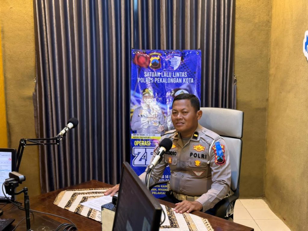PEKALONGAN KOTA – Kabarbahri. co. id – Polres Pekalongan Kota – Polda Jateng – Upaya meningkatkan kesadaran masyarakat terhadap keselamatan berlalu lintas kembali dilakukan Subsatgas Dikmas Lantas Operasi Zebra Candi 2025. Kanit Kamsel Satlantas Polres Pekalongan Kota Ipda Sukendro, S.H., tampil sebagai narasumber dalam dialog interaktif di Radio Kota Batik.