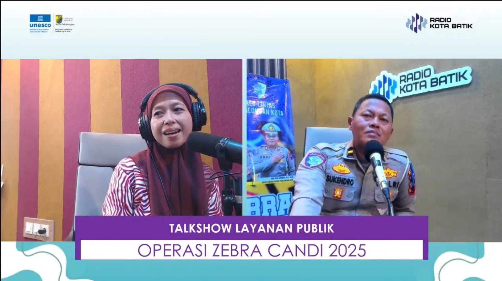 Disampaikan kepada para pendengar bahwa Operasi Zebra Candi 2025 yang dilaksanakan Polres Pekalongan Kota menargetkan turunnya angka pelanggaran, mengurangi kejadian laka lantas, dan meningkatkan kedisiplinan pengendara serta memperkuat kepercayaan publik terhadap Polri khususnya Polres Pekalongan Kota.