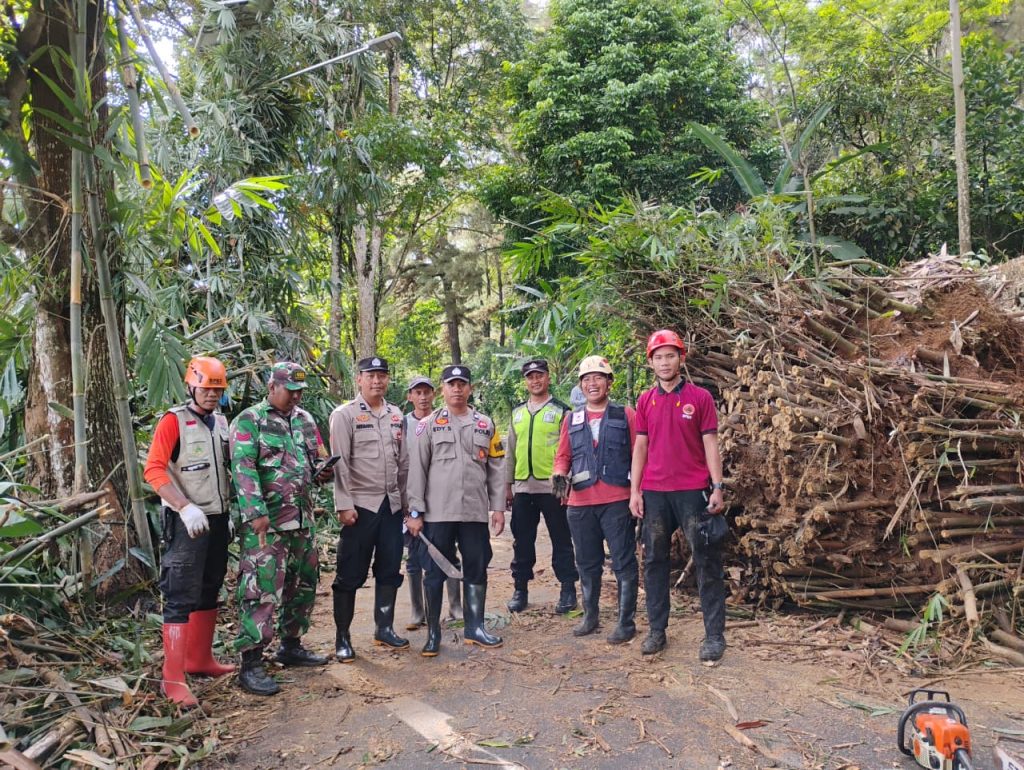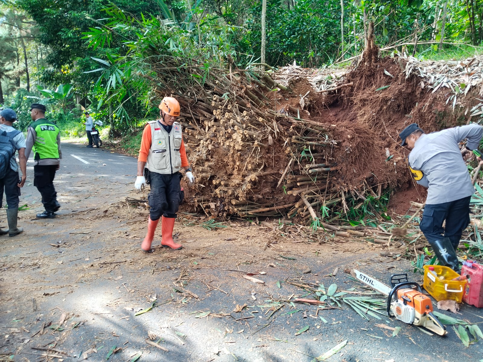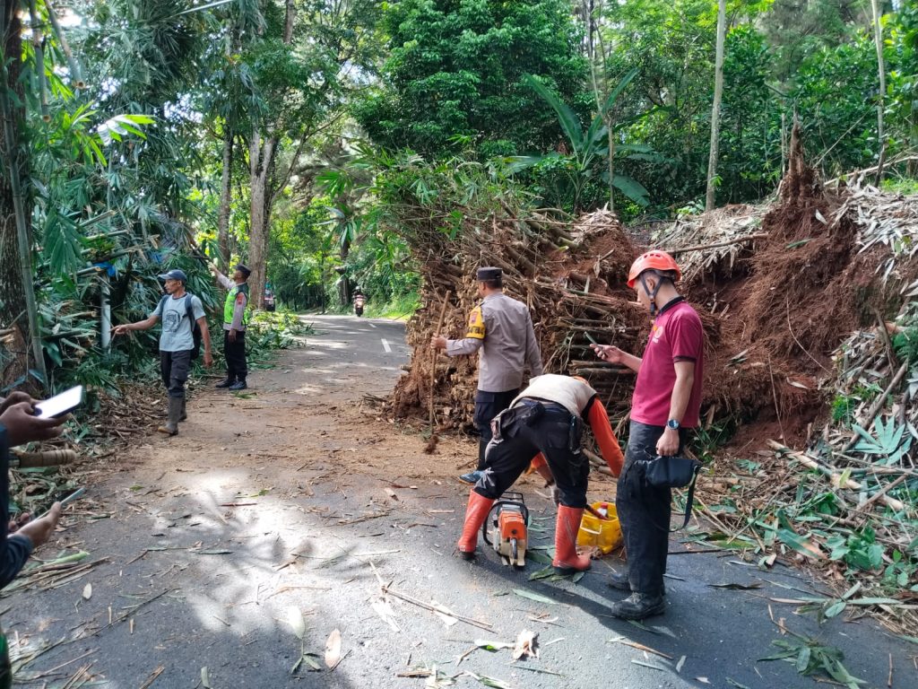 Petugas Gabungan Gerak Cepat Evakuasi Pohon Bambu yang Ambruk