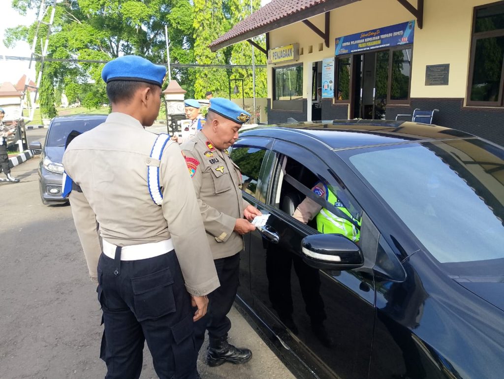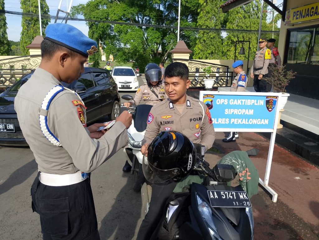 Kegiatan mendadak ini dilaksanakan di pintu masuk utama Mapolres Pekalongan, tepatnya di depan kantor SPKT, menyasar seluruh kendaraan dinas dan pribadi milik personel Polri.
