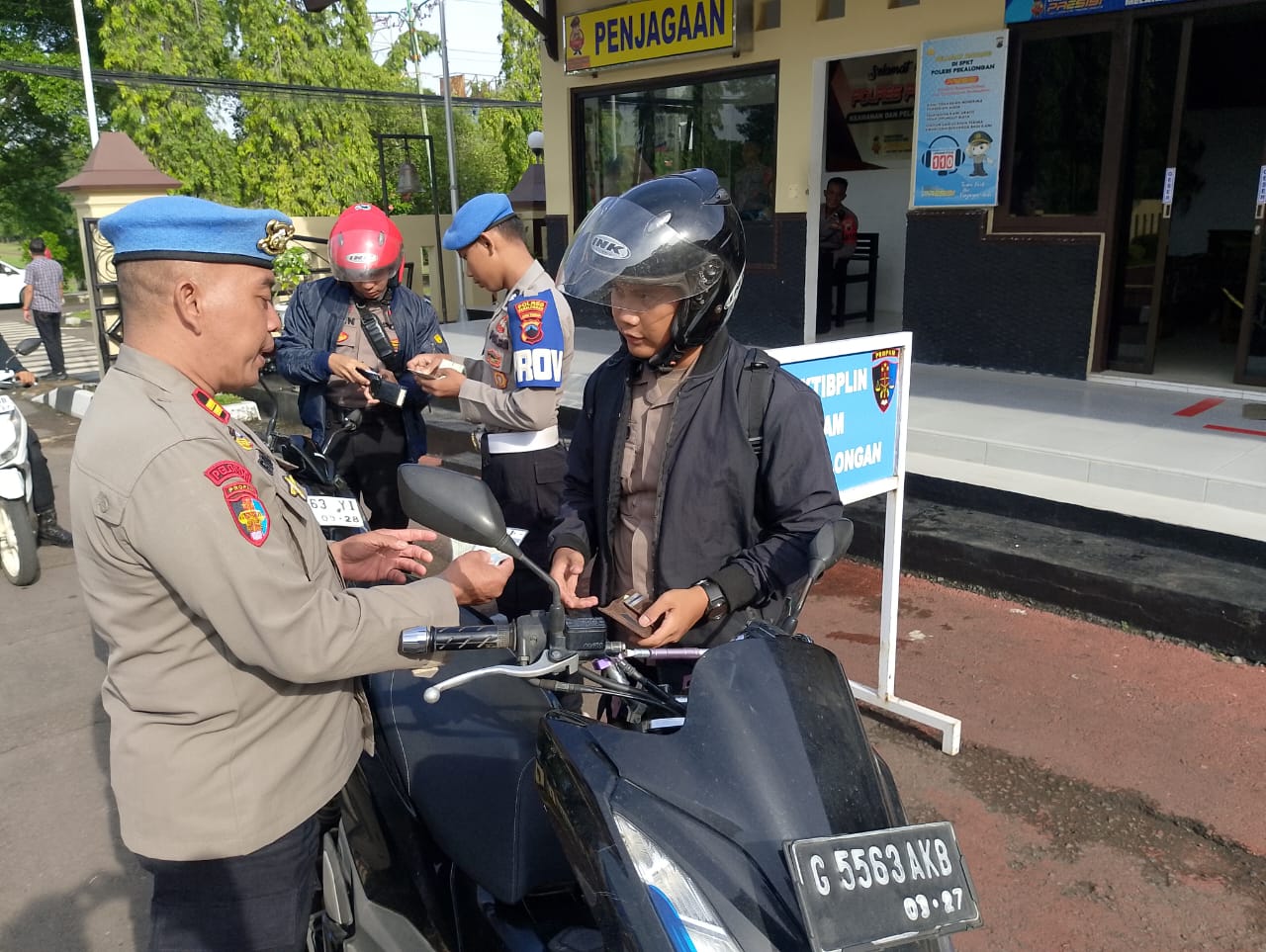 Kegiatan mendadak ini dilaksanakan di pintu masuk utama Mapolres Pekalongan, tepatnya di depan kantor SPKT, menyasar seluruh kendaraan dinas dan pribadi milik personel Polri.