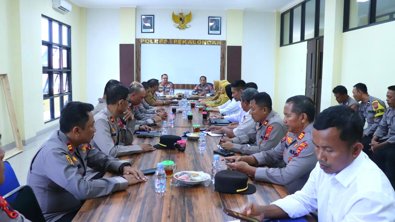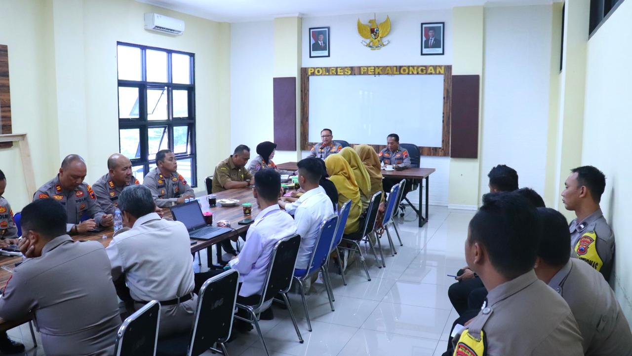 Rakor dipimpin langsung oleh Kapolres Pekalongan AKBP Rachmad C. Yusuf, S.I.K., M.Si dan dihadiri oleh sejumlah pejabat terkait, antara lain perwakilan Dinas Pendidikan dan Kebudayaan Kabupaten Pekalongan, Dinas Kesehatan, serta jajaran pejabat utama Polres, Kapolsek, dan Bhabinkamtibmas.