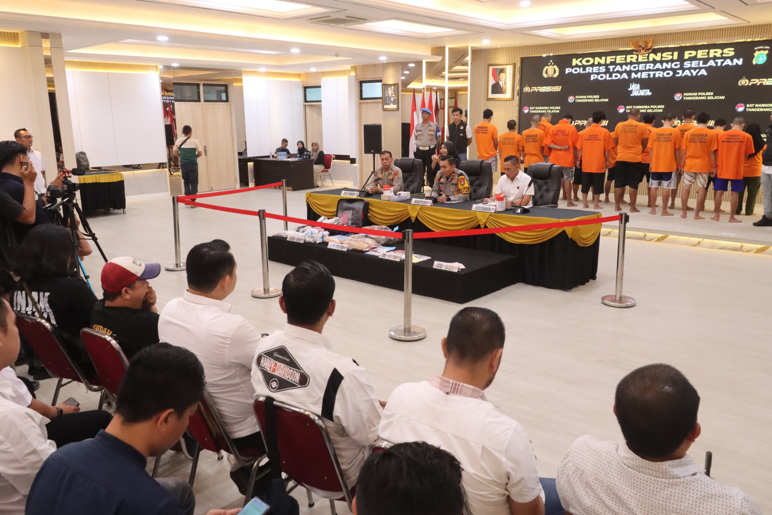 Hal ini disampaikan Wakapolres Tangsel, Kompol Muhibbur RA., S.H., M.H., CPHR., CBA., dalam konferensi pers yang digelar di Aula Guyub Polres Tangsel, Selasa (25/11/2025). Hadir dalam kegiatan tersebut Kasat Resnarkoba AKP Pardiman, S.H., M.H. serta Kasi Humas AKP Agil Sahril, S.H.
