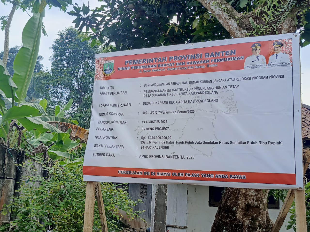 PANDEGLANG – Dunia pembangunan di Kabupaten Pandeglang kembali tercoreng. Proyek Pembangunan Infrastruktur Penunjang Hunian Tetap (Huntap) bagi korban bencana atau relokasi hunian tetap di Desa Sukarame, Kecamatan Carita, Kabupaten Pandeglang, diduga dikerjakan secara asal-asalan.