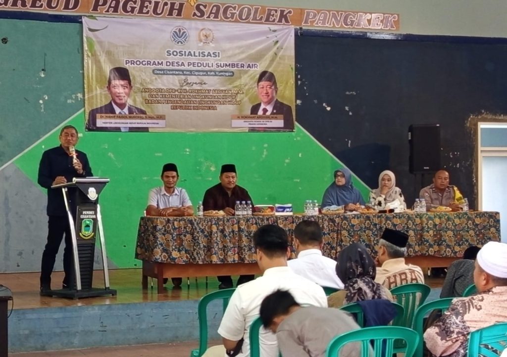 KUNINGAN – Potensi besar sumber mata air di kaki Gunung Ciremai kembali menjadi perhatian serius. Kementerian Lingkungan Hidup bersama Anggota DPR RI Komisi XII, H. Rokhmat Ardiyan, melaksanakan kegiatan Sosialisasi Program Desa Peduli Sumber Air di Balai Desa Cisantana, Kecamatan Cigugur, pada Minggu (12/10/2025).