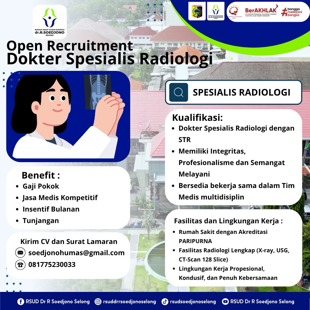 Bagi dokter spesialis radiologi yang berminat, pendaftaran dapat dilakukan dengan mengirimkan lamaran melalui email resmi rumah sakit. Informasi lebih lanjut juga tersedia melalui kontak yang telah disediakan.