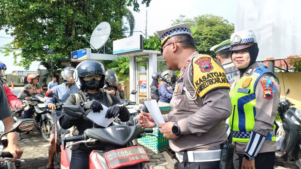 Kasatgas Humas Iptu Purno Utomo, S.H., menyampaikan bahwa kegiatan ini bertujuan meningkatkan kesadaran masyarakat terhadap keselamatan, etika berkendara, serta tertib administrasi kendaraan.