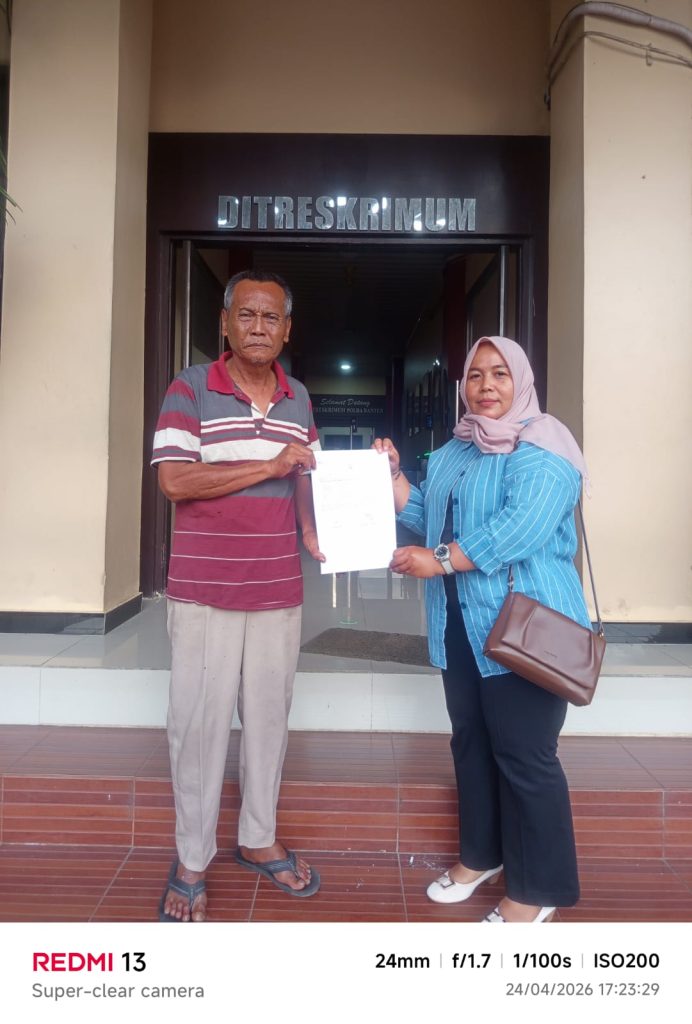 Tak terima dengan perlakuan kasar yang diterimanya, Ilham Budiono didampingi pihak keluarga langsung melayangkan laporan ke Ditreskrimum Polda Banten pada Jumat (24/4/2026).