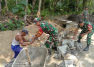 Babinsa Bersama Warga Kerja Bakti Bangun Talud, Cegah Longsor