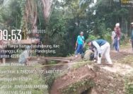 Jembatan Akses Pelajar Rusak Parah, Polres Pekalongan Turunkan Anggota Kerja Bakti di Kandangserang