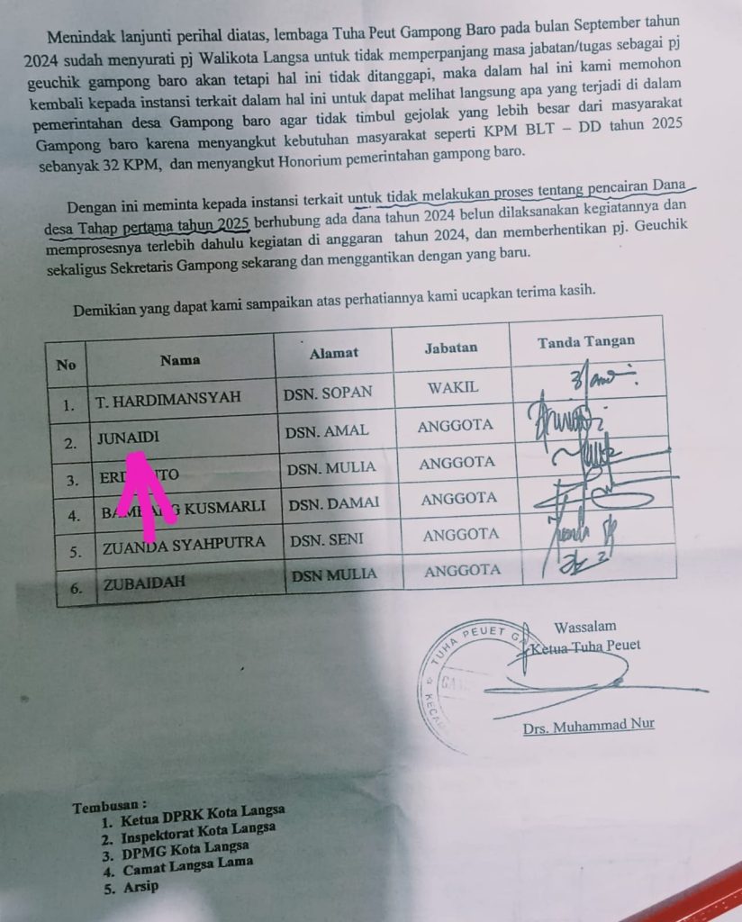 Gampong Baro | Pada sebelumnya sempat pernah telah terjadi pemberitaan miring secara publik di beberapa media masa online ini dan media masa online lainnya, berjudul. Wali Kota Langsa, Terbitkan Surat Edaran Kepada Pihak Para Camat Se-Kota Langsa. Mengingat Dugaan Antisipasi Rangkap Jabatan Di Tubuh Para Perangkat Desa, terbitan pada hari kamis 23 oktober 2025 pekan lalu.