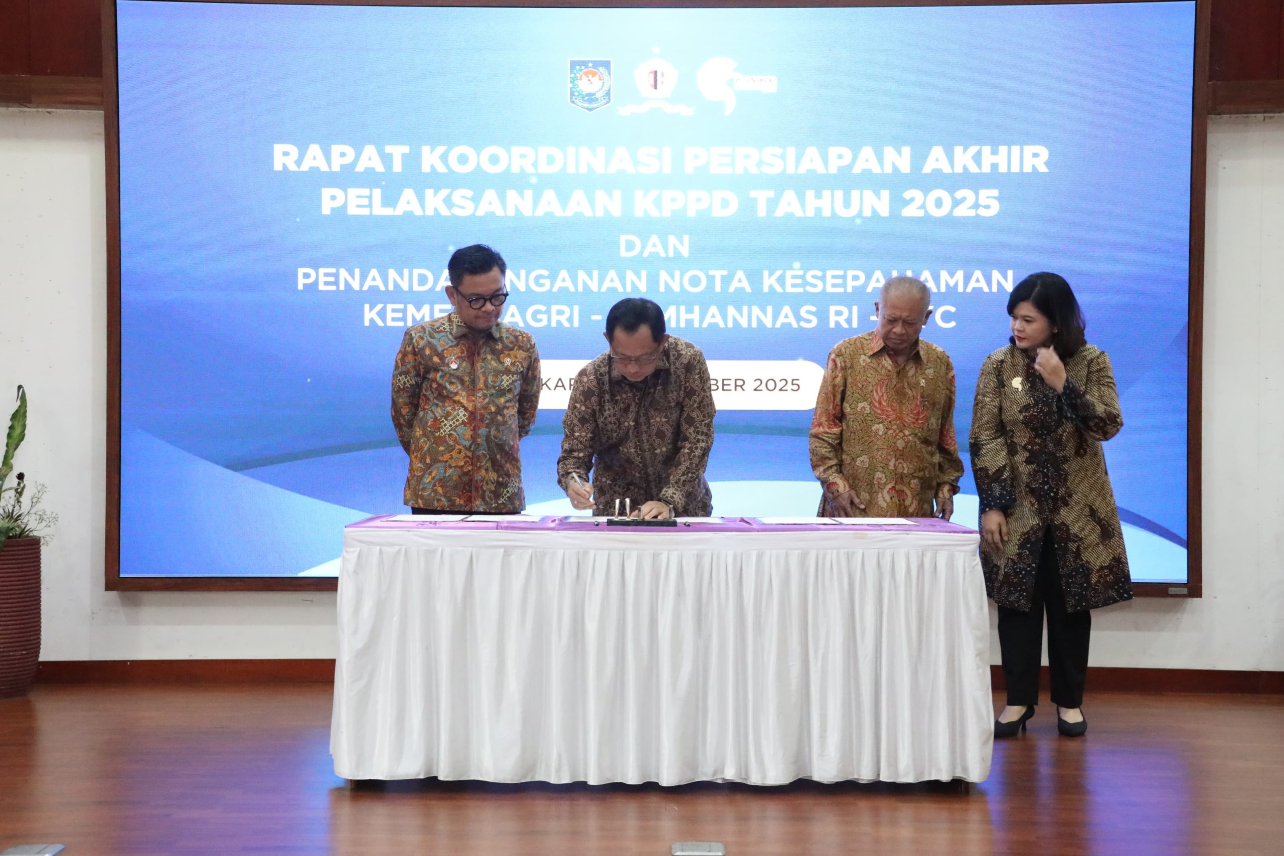 Jakarta – Menteri Dalam Negeri (Mendagri) Muhammad Tito Karnavian bersama Gubernur Lembaga Ketahanan Nasional (Lemhannas) RI Ace Hasan Syadzily dan Ketua Dewan Pembina Purnomo Yusgiantoro Center (PYC) Purnomo Yusgiantoro menandatangani Nota Kesepahaman tentang Pelaksanaan Kursus Pemantapan Pimpinan Daerah (KPPD) Tahun 2025. Langkah ini merupakan upaya Kementerian Dalam Negeri (Kemendagri) dalam meningkatkan kompetensi kepala daerah. Penandatanganan berlangsung di Kantor Lemhannas RI, Jakarta, Jumat (24/10/2025).