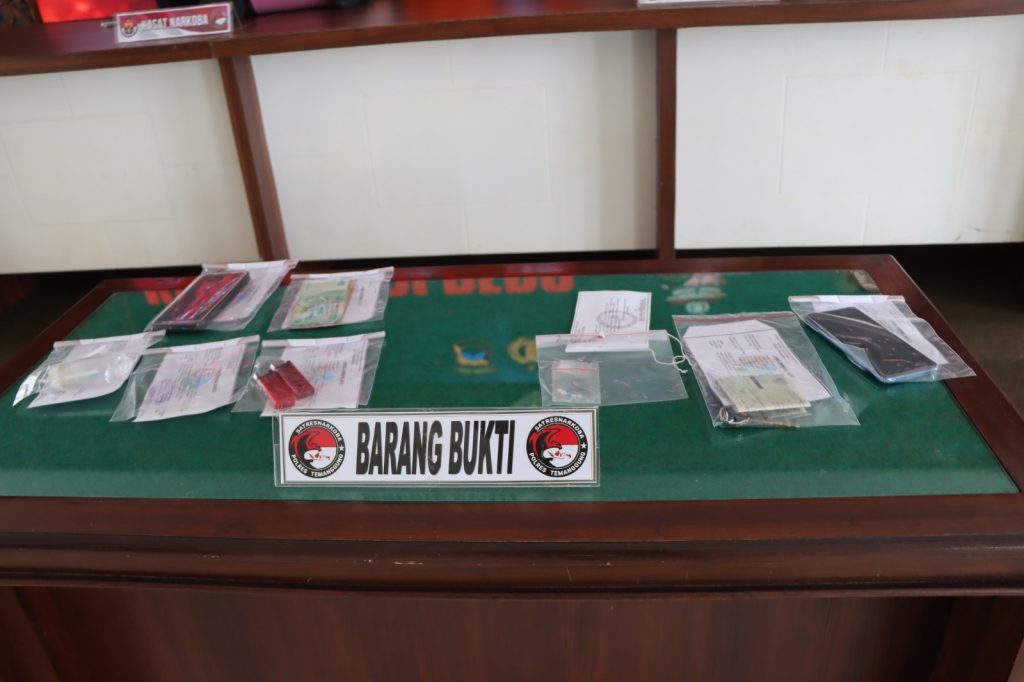 Dari penggeledahan, polisi menemukan kunci jaringan ada pada telepon seluler MF, yang berisi petunjuk foto lokasi penyembunyian sabu. Total 1,03 gram sabu disita, termasuk alat hisap (bong) dan pipet kaca yang menguatkan peran mereka sebagai pengedar sekaligus pengguna.