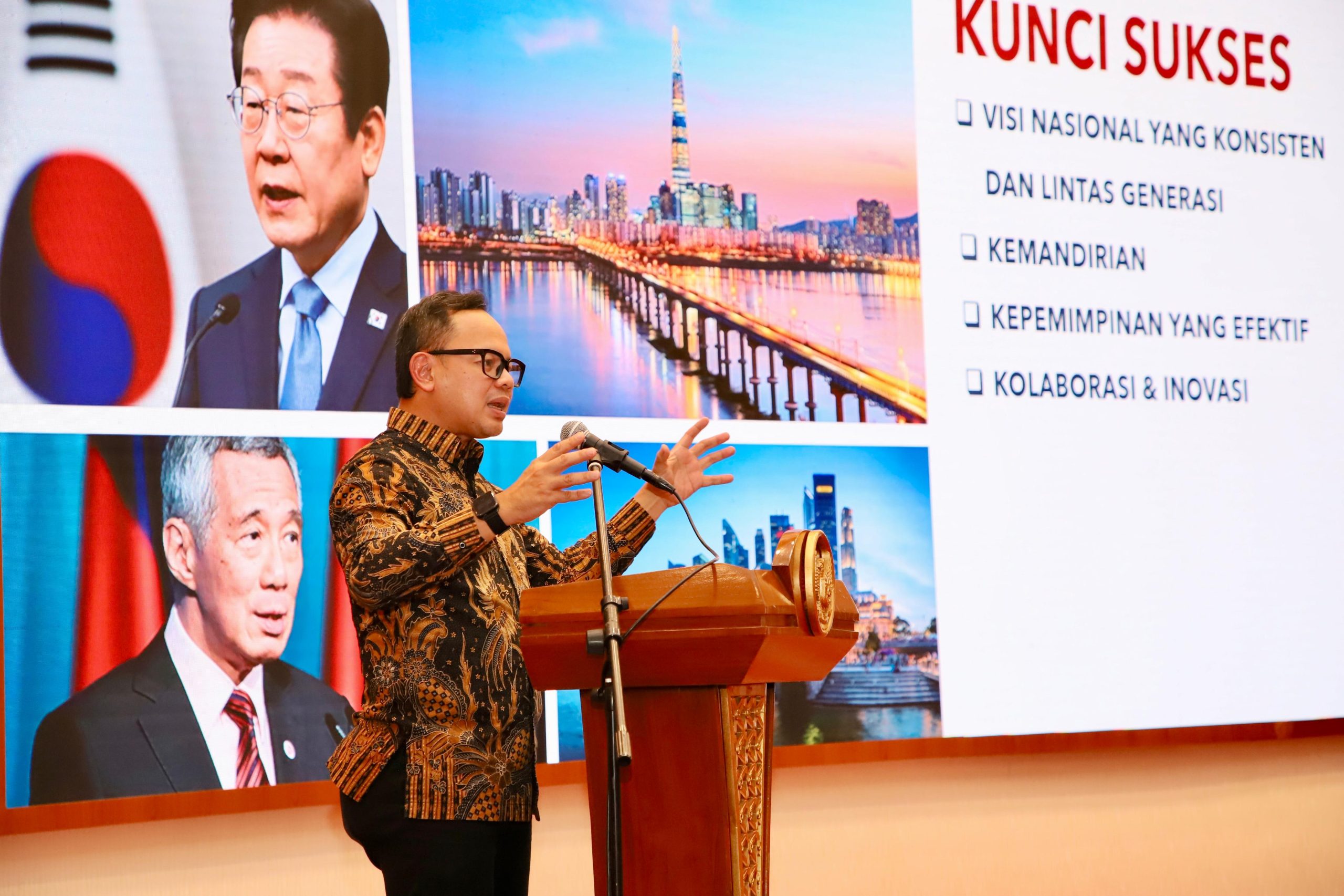 “Marilah kita telaah The Great Wave ini sebagai bahan bagi kita untuk merefleksi perjalanan bangsa ini ke depan dalam membaca tanda-tanda zaman. Dalam konteks global Bapak-Ibu sekalian, kondisi sudah jauh berubah dibanding ketika saya SMA ataupun kuliah. Bergeserlah episentrum dunia ke Asia hari ini,” terangnya.