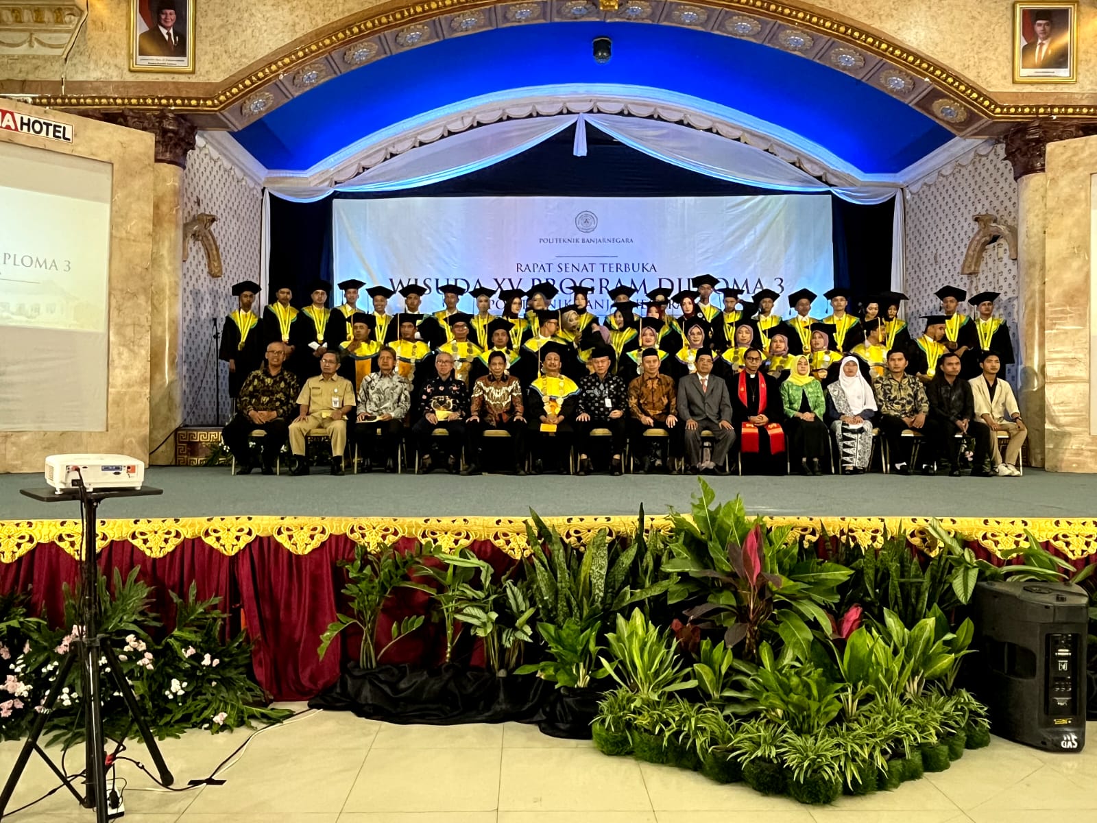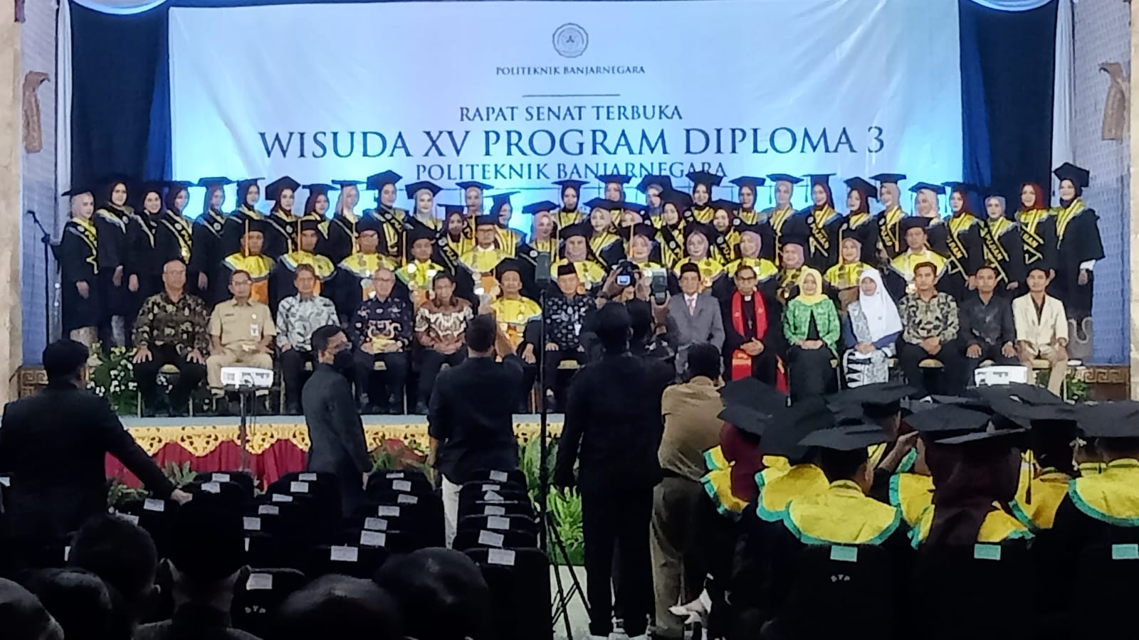 Wisuda ke-15 ini turut dihadiri Sekretaris Daerah Kabupaten Banjarnegara, Drs. Indarto, M.Si., yang hadir mewakili Bupati Banjarnegara. Dalam sambutannya, Indarto mengapresiasi pencapaian Politeknik Banjarnegara yang terus meningkatkan kualitas dan jumlah lulusannya.